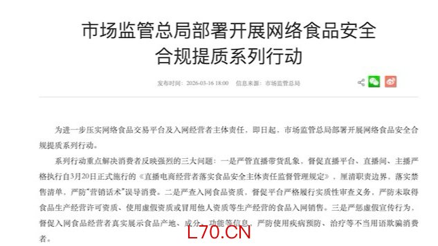 3·15反馈|网络食品当成“神药”卖!市场监管总局:严惩虚假宣传行为网络食品安全合规提质系列行动来了。