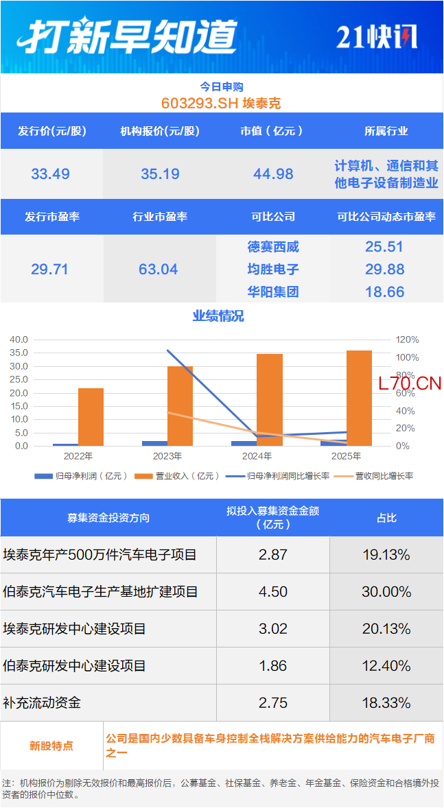 4月7日,可申购沪市主板的埃泰克(603293.SH),以及北交所的恒道科技(920177.BJ)。