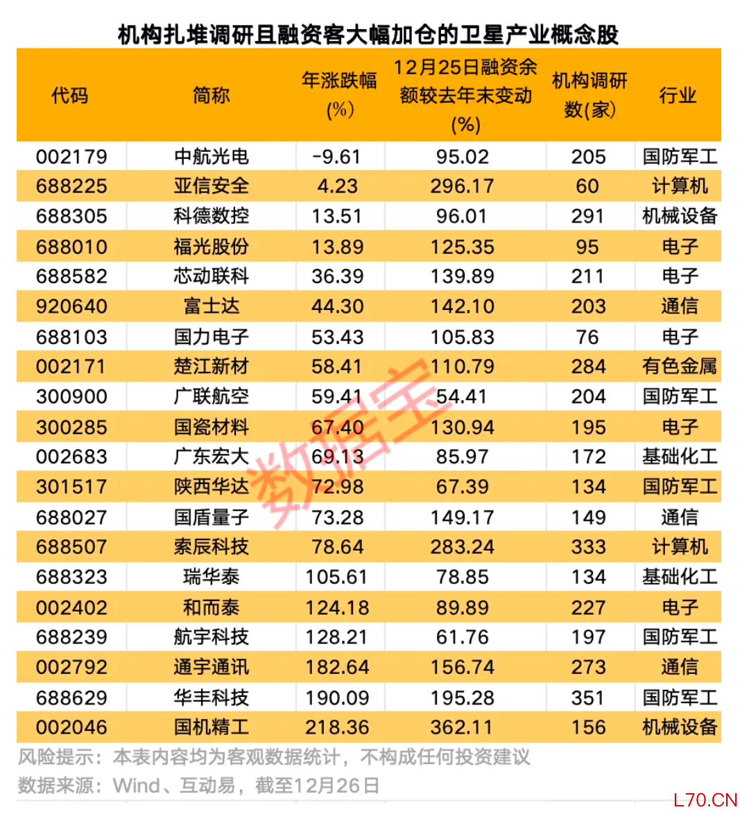 卫星产业链公司出炉 20只机构扎堆调研个股获融资客大幅加仓股票软件