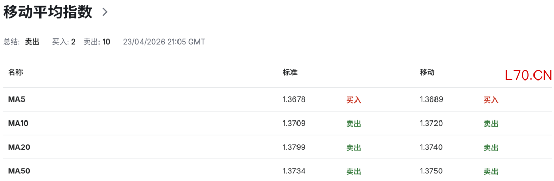 等待1.3710-1.3640价格区间4小时收市跟进信号,采用突破交易。